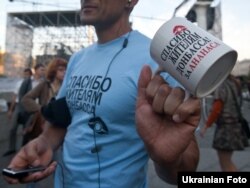 У четвер близько тисячі осіб зібралися на майдані Незалежності перед входом до Головпоштамту. На кількох столах організатори благодійного ярмарку розклали футболки із закидами на адресу посадовців чинної влади. Найпопулярніші серед них – «Кровосісі», цитата відомої обмовки чинного Прем’єр-міністра, і «Спасибі жителям Донбасу…» – слоган із нецензурною кінцівкою, який наприкінці літа стали використовувати футбольні фанати, обурені діяльністю Президента Віктора Януковича.