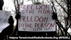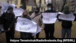 Львів – Близько півсотні молодих людей, активістів націоналістичної організації «Автономний опір», які закрили свої обличчя, протестували біля Російського консульства у Львові, вимагаючи «припинити беззаконня у Росії і відмінити сфальсифіковані вибори».