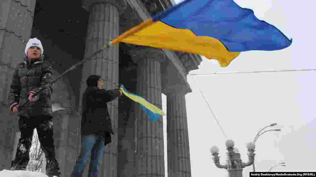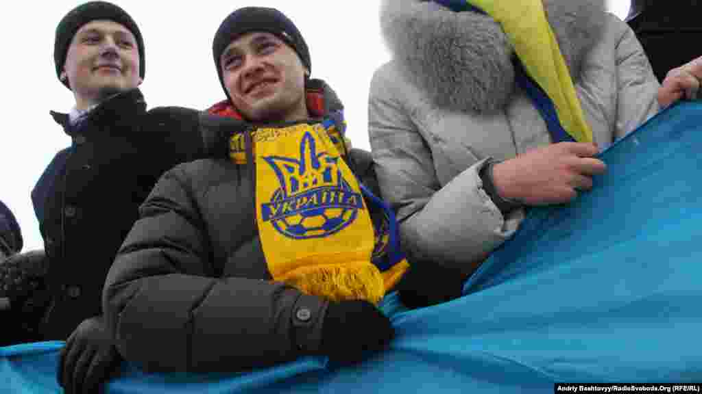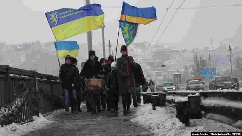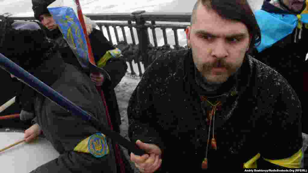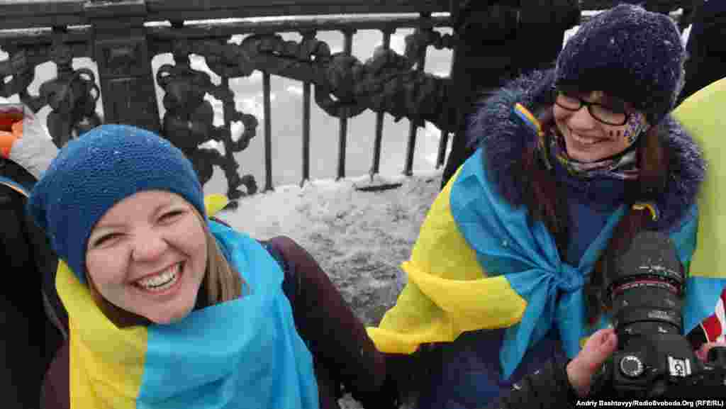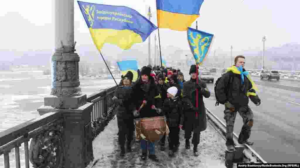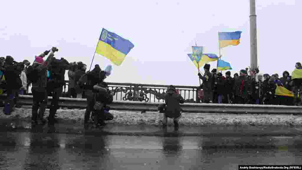 До Дня Соборності на мосту Патона у Києві громадські активісти з'єднали береги Дніпра символічним «ланцюгом єдності».