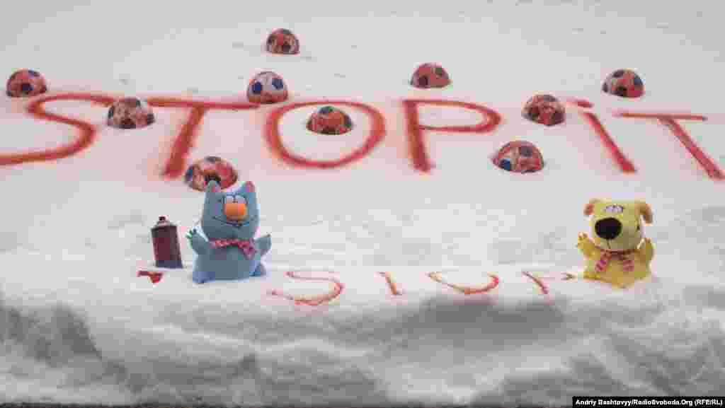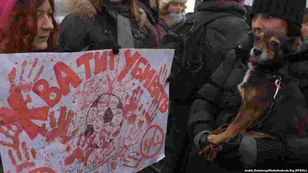 Кілька десятків осіб пікетують Кабмін, вимагаючи негайно припинити фізичне винищення тварин комунальними службами по всій країні. Учасники акції зазначають, що вони не представляють ніяку організацію і дізналися про акцію з Facebook, де було оголошено та організовано акцію на захист безпритульних тварин «Stop it»