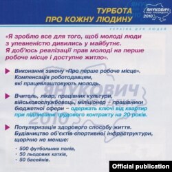Перегляд Передвиборної програми «Україна для людей» дозволяє зробити висновок, що абсолютна більшість обіцянок чинного глави держави не виконуються. Деякі з обіцянок тепер виглядають цілком екзотично. Скажімо, щодо будівництва щорічно не менше як 500 футбольних полів, 50 льодових ковзанок і 50 басейнів. Щодо обіцянок виборів за відкритими списками та виборності суддів, то Янукович робить усе з точністю до навпаки.