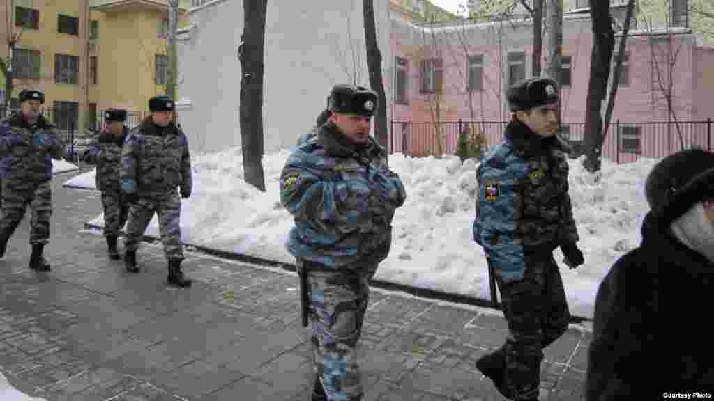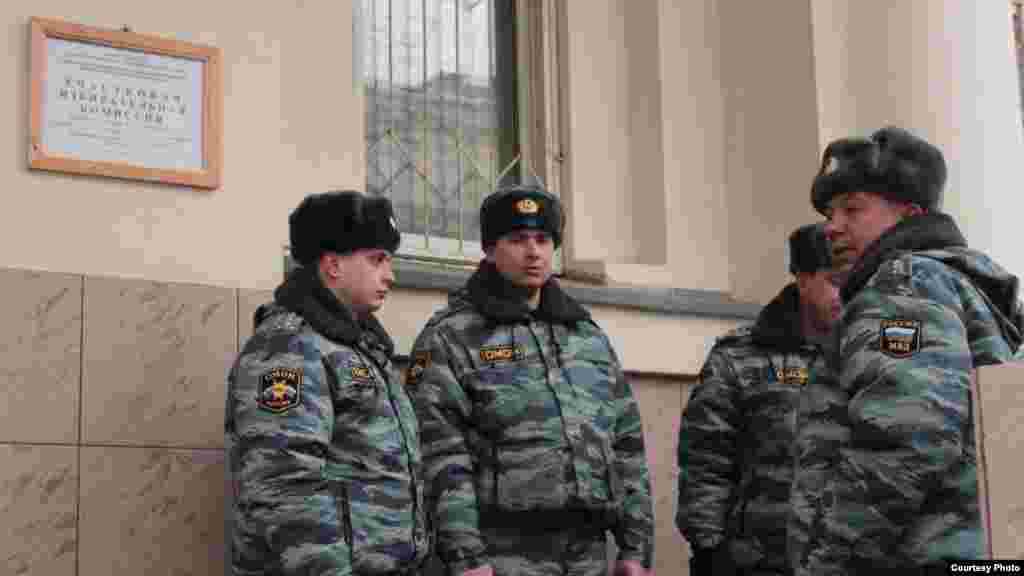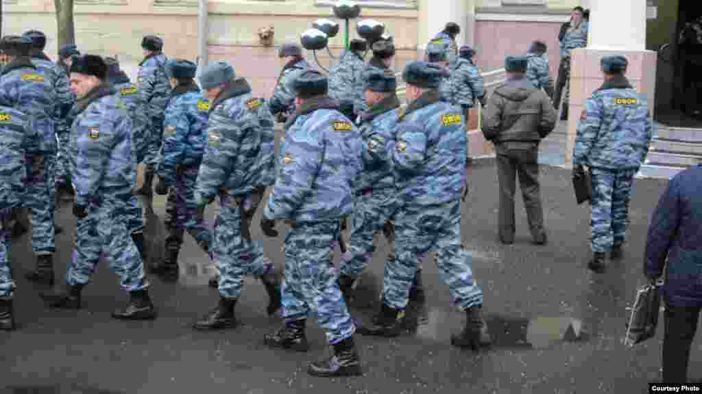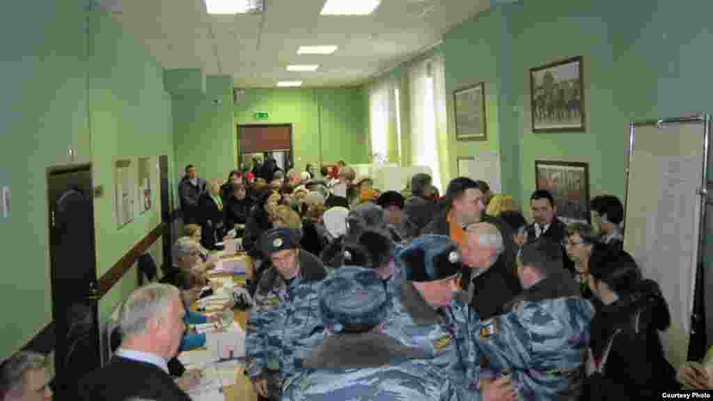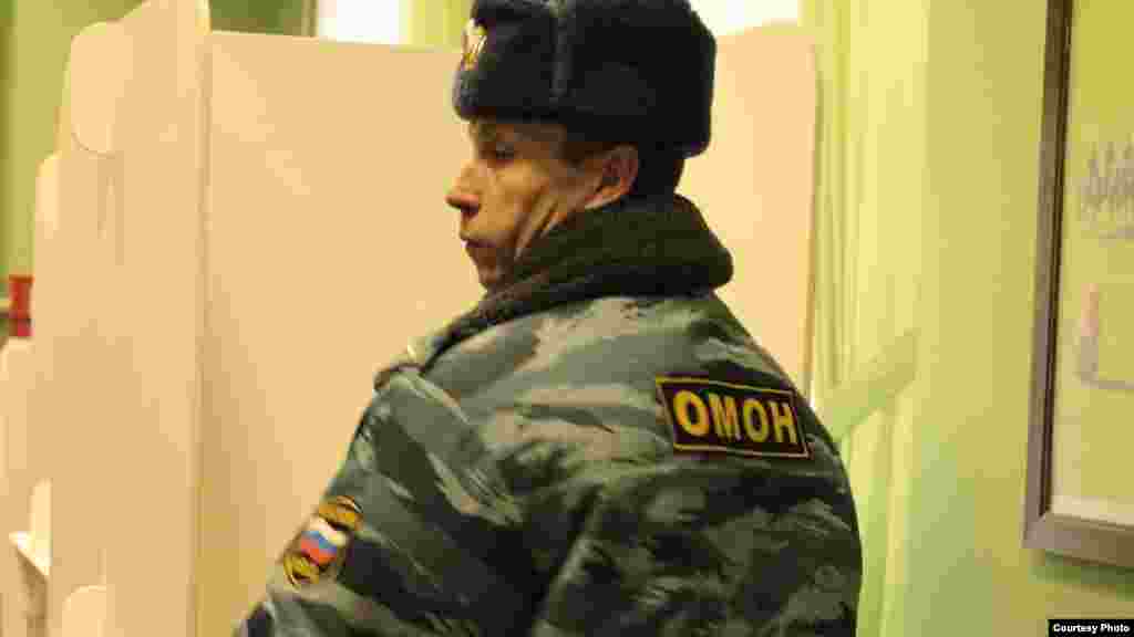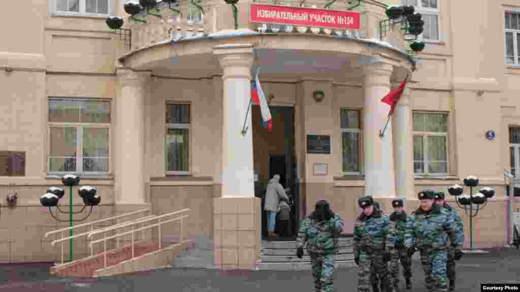 На виборчій дільниці №154, що у центрі Москви, виборці не мають змоги проголосувати через надзвичайно велику кількість поліцейських, які прийшли на дільницю. Бійці спецпідрозділів голосують за відкріпними посвідченнями. Всіх їх організовано привезли автобусами.