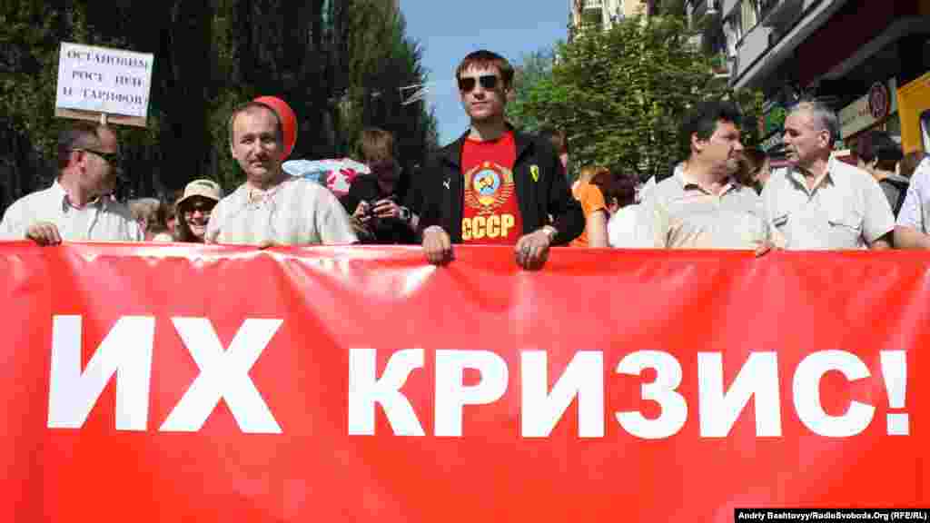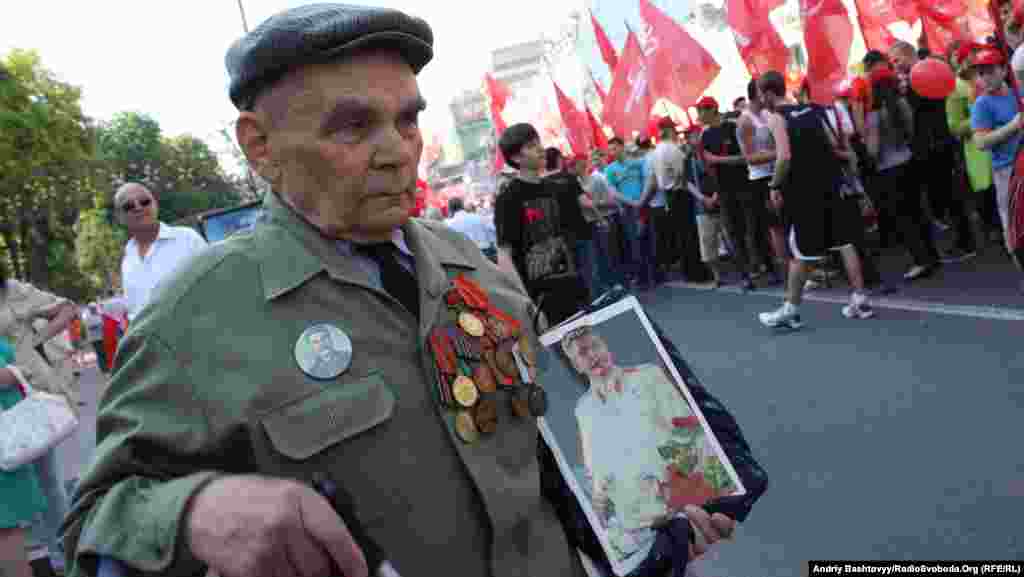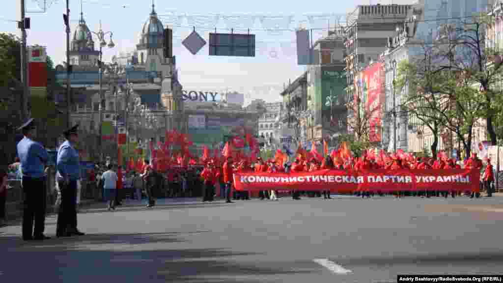 Прихильники лівих політичних партій зібрались на Хрещатику на традиційну першотравневу демонстрацію до Дня міжнародної солідарності трудящих.