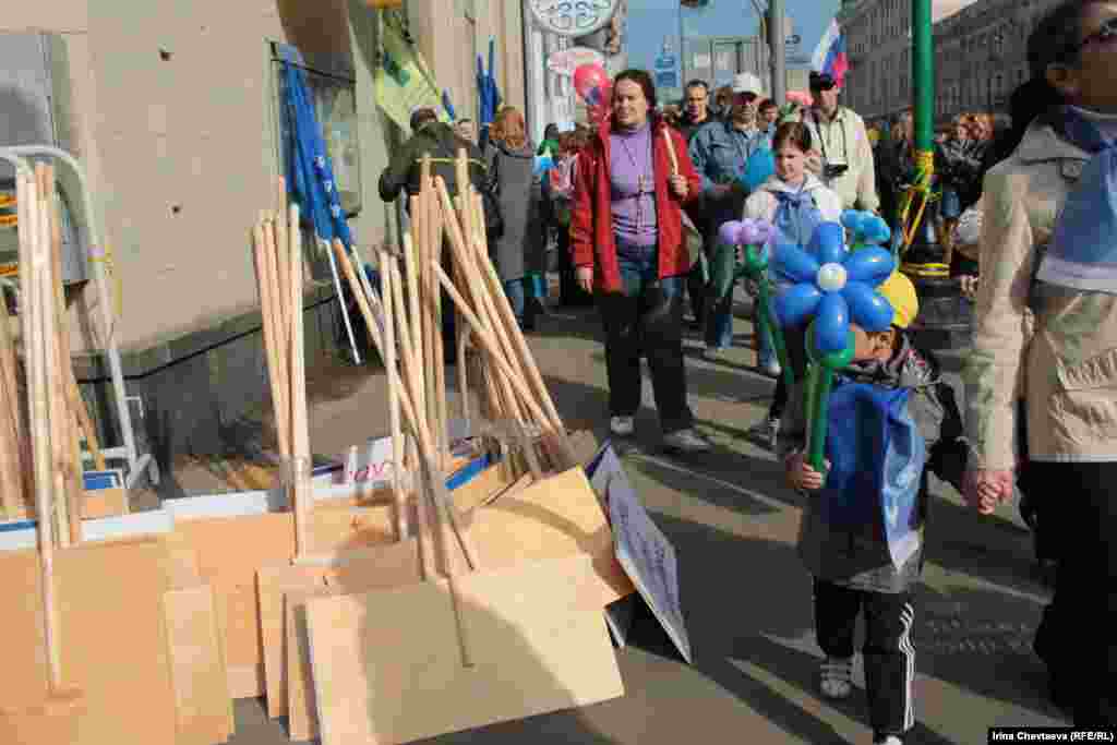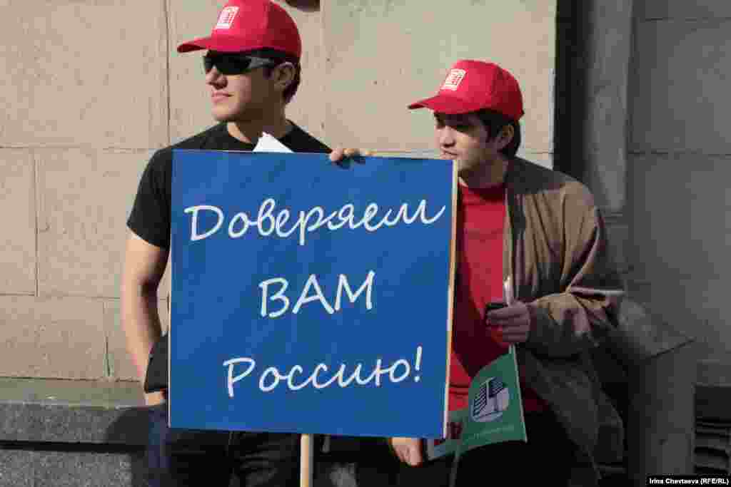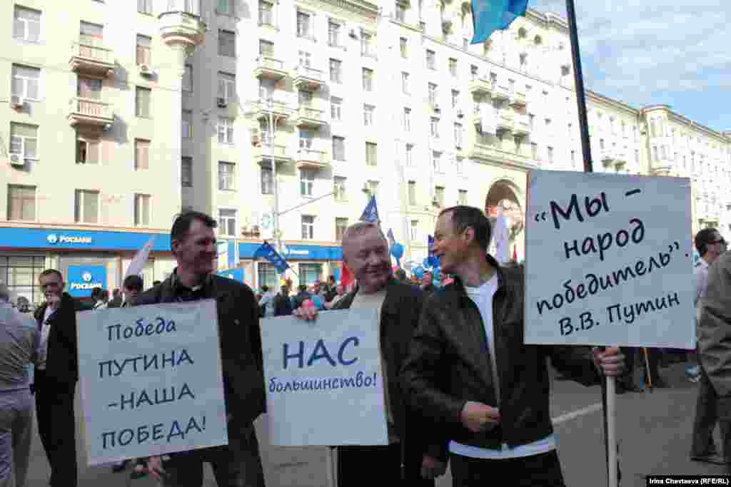 Президент Росії Дмитро Медведєв і обраний глава держави, чинний прем’єр-міністр Володимир Путін очолили колону, за їхніми спинами були плакати «Люди праці за Путіна і Медведєва», «Прийшла весна – болото висохло». За оцінками правоохоронців, в акції взяли участь 120 тисяч осіб.