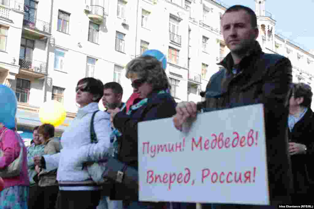 Президент Росії Дмитро Медведєв і обраний глава держави, чинний прем’єр-міністр Володимир Путін очолили колону, за їхніми спинами були плакати «Люди праці за Путіна і Медведєва», «Прийшла весна – болото висохло». За оцінками правоохоронців, в акції взяли участь 120 тисяч осіб.