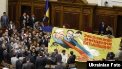 Київ – Розгляд законопроекту «Про засади державної мовної політики» завершився у четвер не голосуванням, а великою бійкою між депутатами. Через це спікер закрив засідання. Опозиціонери наголошують, що цей законопроект фактично заперечує державний статус української мови на користь російської. Натомість депутати-регіонали наполягають на тому, що законопроект відповідає Європейській хартії регіональних мов.