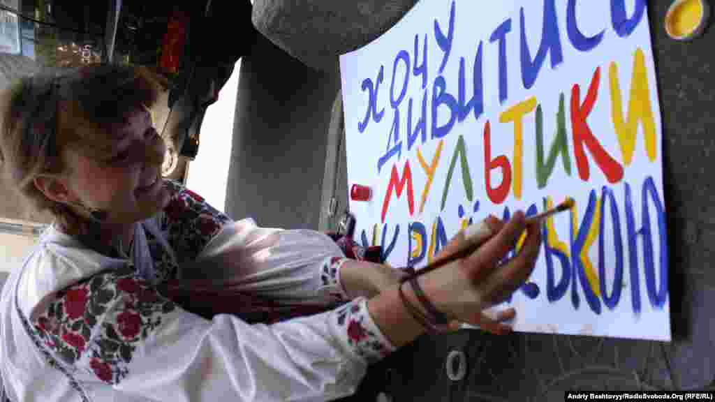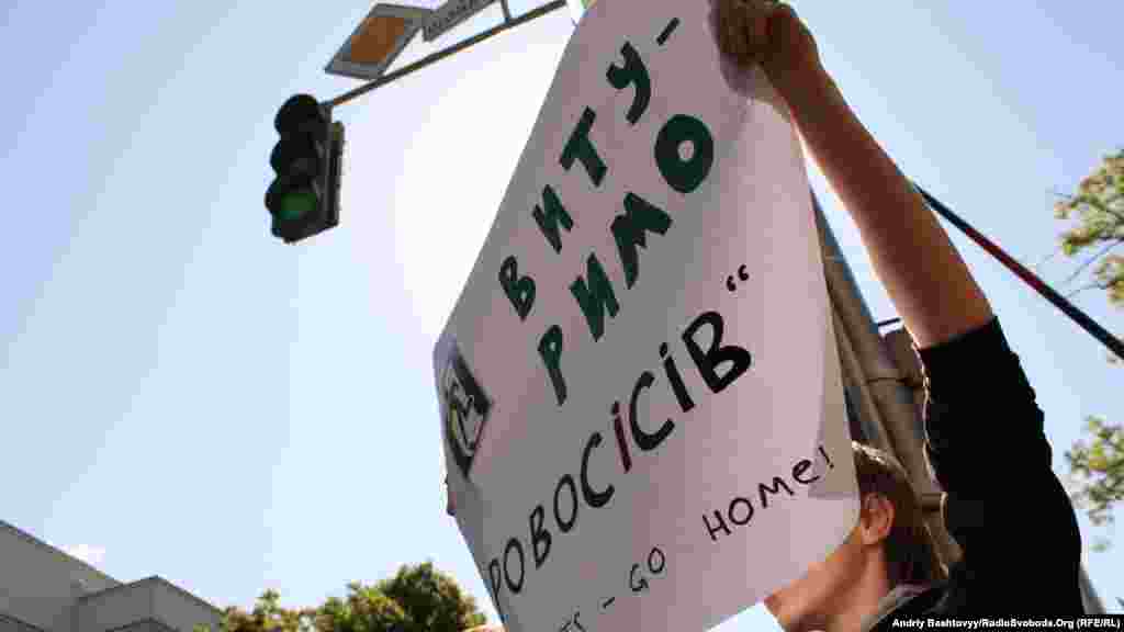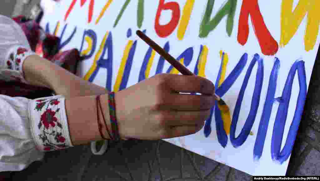 Близько 500 людей протестують біля будівлі Верховної Ради України проти розгляду й ухвалення законопроекту, розробленого депутатами Партії регіонів про основи мовної політики.