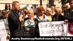 Організатори через гучномовець закликають Президента стати на захист малого бізнесу, а від Генерального прокурора вимагають порушити кримінальну справу щодо ситуації навколо ринку.
