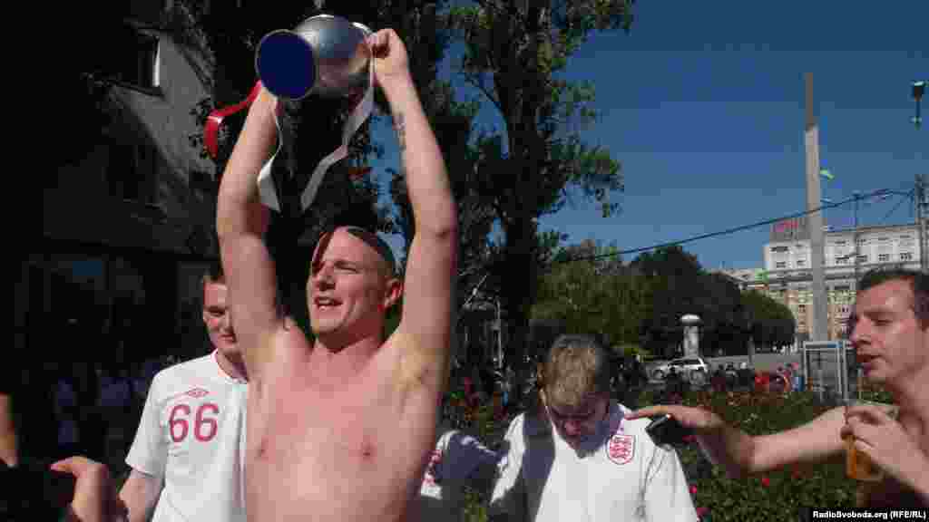 Англійські вболівальники пронесли вулицями Донецька труну в знак протесту проти несправедливого звинувачення Україна в расизмі, 19 червня 2012 року
