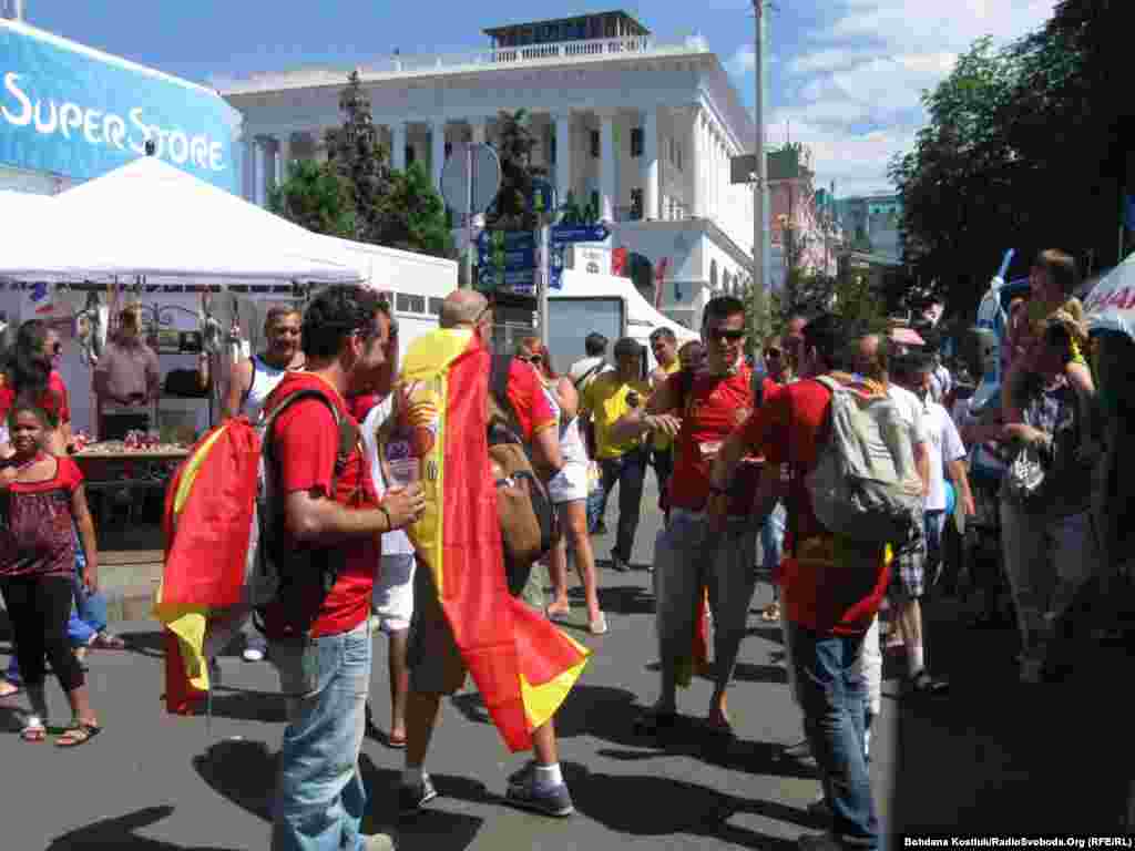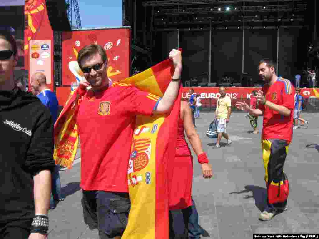 За повідомленням, із цих країн, збірні яких виборюють титул чемпіона Європи, до Києва прибули близько 15 тисяч уболівальників. Фанати обох збірних-фіналістів поводяться дисципліновано, у фан-зоні вболівальники з Італії та Іспанії співають, демонструють позитивний настрій і охоче спілкуються з побратимами з інших країн.