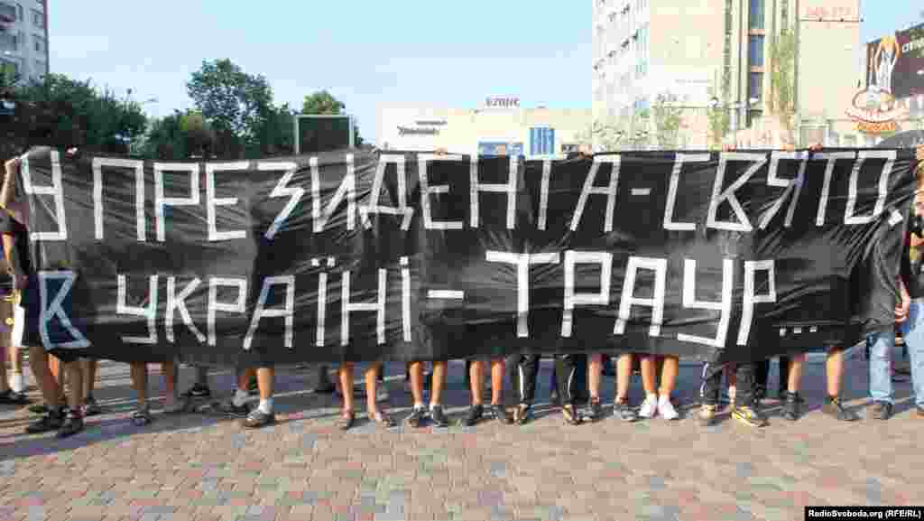 Близько півсотні черкасців у понеділок взяли участь у жалобній пішій ході на честь дня народження Президента Віктора Януковича. Молоді активісти заліпили роти чорними смужками, а на великому плакаті, який несли в руках, написали «У Президента – свято, в Україні – траур». Очолювали колону двоє хлопців із портретом Президента із заклеєними очима та із штучним вінком, «прикрашеним» чорною стрічкою «З днем народження».Насамкінець черкаські патріоти поклали «подарунок» біля дверей Черкаської ОДА, а навпроти вікон чиновників провели хвилину мовчання.