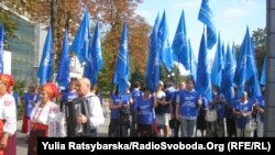 «Противно, коли ображають людей. Це наступ на мову, на людей, які живуть в Україні і хочуть чути українську мову», – сказала Радіо Свобода учасниця акції протесту.