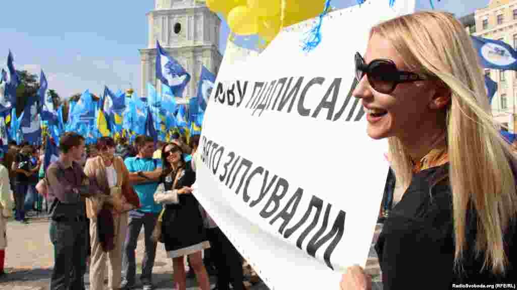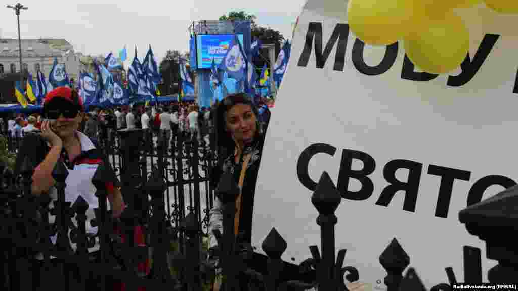 Захисників української мови намагалися виштовхати з Софійської площі прихильники Партії регіонів, які проводили там мітинг до Дня Незалежності.