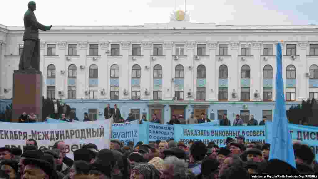 Від 2 до 3 тисяч осіб у понеділок в Сімферополі мітингували проти порушень індивідуальних та колективних прав людини, зокрема, проти утисків кримських татар. Мітинг, скликаний Меджлісом, був присвячений Міжнародному дню захисту прав людини, що відзначається 10 грудня. Учасники акції протесту закликали українських керівників підтримати проведення в 2013 році Міжнародного форуму з питання «відновлення прав кримськотатарського народу, забезпечення його безпеки і гарантій розвитку в Україні».
