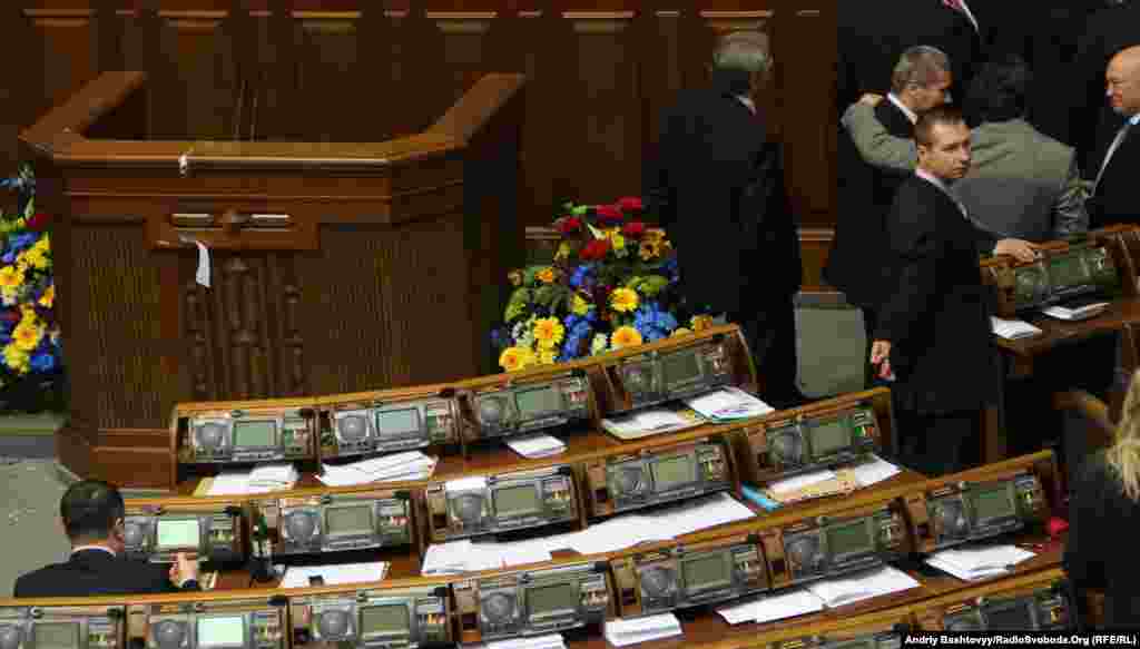 Депутати встигли побитись, блокувати трибуну, подарувати Литвину квіти і поспілкуватись...
