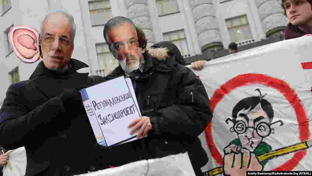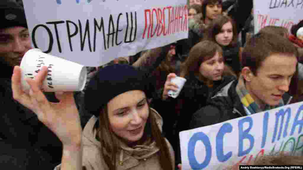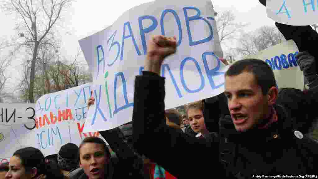 Учасники акції скандували «Азаров у Кабміні – освіта у руїні», «Азарову освіта – як мертвому кобіта», «Бунтуй! Кохай! Права не віддавай!».