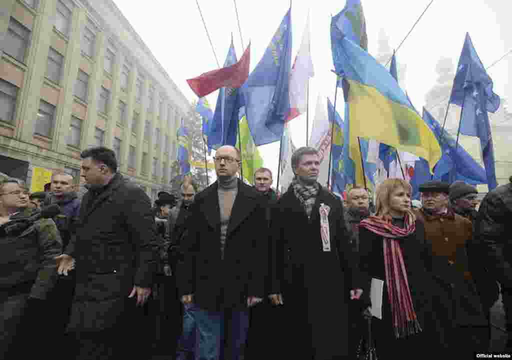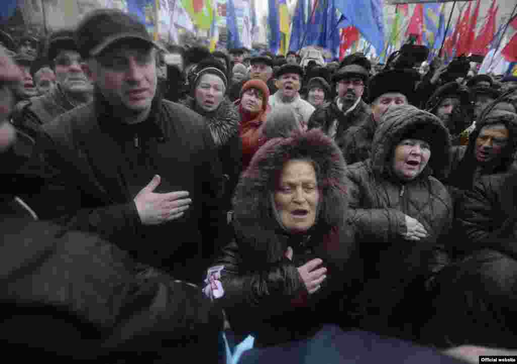 Опозиція розпочала акцію «Вставай, Україно!» з Вінниці. Головні вимоги – відставка президента Віктора Януковича та боротьба за соціальні та економічні права. Перед початком мітингу опозиціонери заявили, що в місті розповсюдили фальшиві листівки про перенесення віча. (Фотографії з сайту ВО «Батьківщина»)