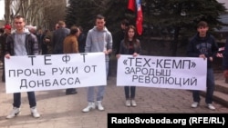 Близько 30 мітингувальників зібралися під фондом «Ізоляція» в Донецьку, щоб виступити проти візиту посла США Джона Теффта в Донецьк.