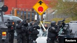За повідомленнями поліції штату Массачусетс, один з двох підозрюваних в організації вибухів на фініші Бостонського марафону загинув під час перестрілки з поліцейськими в передмісті Бостона. Другому вдалося втекти, і правоохоронці його розшукують. Вони кажуть, що підозрюваний, який на фотографії, розповсюдженій ФБР, має на собі білу кепку, озброєний і небезпечний. Американські засоби масової інформації повідомляють, що підозрювані у теракті це брати чеченського походження.