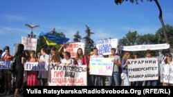 Викладачі і студенти Дніпропетровського державного аграрного університету сьогодні знову пікетують обласну державну адміністрацію, протестуючи проти рішення Міністерства освіти щодо злиття їхнього вишу з двома закладами інших профілів – митною та фінансовою академією – в один навчальний заклад економічного спрямування.