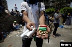 Учасники сидячої демонстрації під казармами Республіканської гвардії заявили про вину військових у нападі на них у понеділок. Але речники армії кажуть, що, мовляв, «озброєні терористи» стріляли у натовп страйкарів перед казармами, де, на думку нападників, міг бути під арештом скинутий минулої середи військовими президент Єгипту Мурсі.