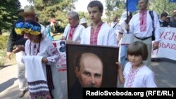 Хода зупинилася поблизу цього дерева, де організатори влаштували урочистості з піснями і читанням віршів на слова Шевченка. Більшість гостей прийшли на захід у вишиванках. Це своєрідний дрес-код, який з роками стає більш популярний, каже голова запорізького обласного відділення всеукраїнського товариства «Просвіта» Олег Ткаченко.