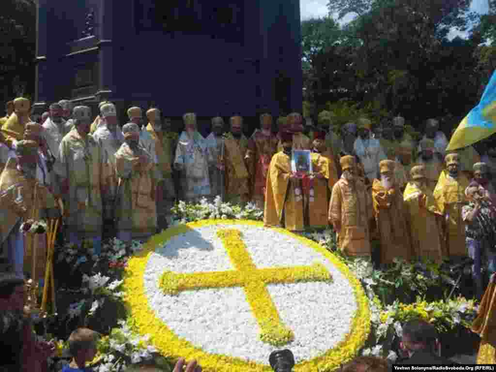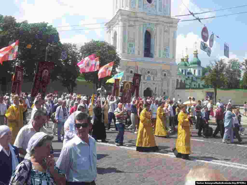 Хресна хода Української православної церкви Київського патріархату з нагоди 1025-річчя Хрещення Київської Русі пройшла в неділю від Володимирського кафедрального собору до Володимирської гірки центром Києва. Хода завершилася опівдні молебнем на Володимирській гірці, який очолив патріарх Київський Філарет.