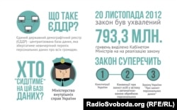 Тим часом, на початку вересня ідея створення ЄДДР отримала нове фінансове дихання – Кабмін затвердив план заходів щодо впровадження біометричних паспортів та виділив на його втілення (у тому числі на створення ЄДДР) суму у 793,3 мільйона гривень. Це, звісно, не зимова Олімпіада в Сочі, але кошти немалі, а відповідно і нові корупційні можливості. Але нам передусім ідеться про ризики цього закону з точки зору порушень права людини на приватність, яке ще називають правом «бути залишеним у спокої». На цю тему написано вже немало. Тому ми вирішили її візуалізувати.
