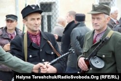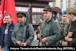 Учасники клубу військово-історичної реконструкції УПА «Повстанець» із Києва, Кривого Рогу, Хмельницького, Львова крокували в упівській формі, яку спеціально пошили за зразками і за фотографіями.