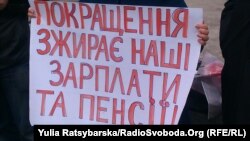 У руках вони тримали плакати з написами «Пакращення» зжерло наші зарплати і пенсії!», «Перемогли німецьких – переможемо й донецьких!». Учасники акції тарабанили ложками об порожні каструлі, а також торохкотіли горохом, набраним у пластикові пляшки, «наочно демонструючи зубожіння українського народу».
