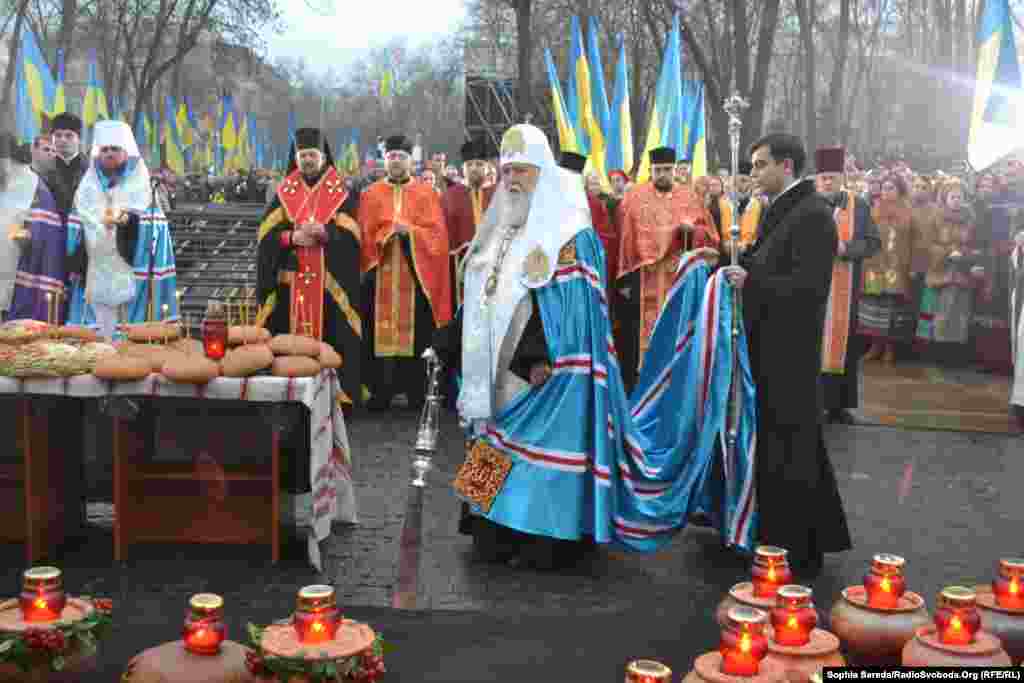 У Києві біля Меморіалу пам'яті жертв Голодомору відбувся молебень за участі представників церков, громадських діячів, політиків та громадян.