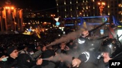 Увечері на Євромайдані на Європейській площі в Києві сталися сутички між демонстрантами і правоохоронцями. Вони спалахнули після того, як опозиціонери заявили, що в одному з мікроавтобусів на площі перебували працівники спецслужб, які вели аудіо- й відеоспостереження за мітингом. Демонстранти розбили вікна мікроавтобуса й намагалися захопити його, бійці спецзагону міліції «Беркут» із кийками захищали машину.