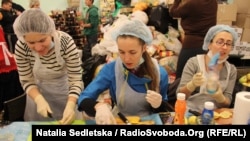 Робота кипить. Дівчата нарізають бутерброди, фрукти та постійно співають українські народні пісні. Процес завмирає лиш на мить – кухня виконує український гімн. Потім – молитва. І знову до роботи.