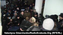 Розбивши скло дверей, натовп потрапив всередину приміщення. Великими зусиллями народному депутатові-батьківщинівцю Миколі Кучеруку, а також місцевим депутатам Роману Ковалю та Олексію Бучинському, а також майданівцю-унсовцю Олександрові Музичку вдалося втихомирити ситуацію. Представники Майдану разом з журналістами двічі ходили на переговори до чиновників. Їхнім результатом стали написані заяви про відставку, які тут же винесли до народу.