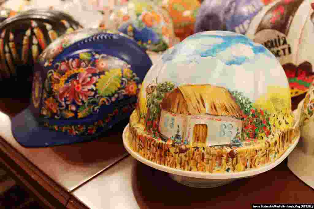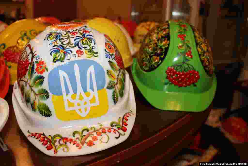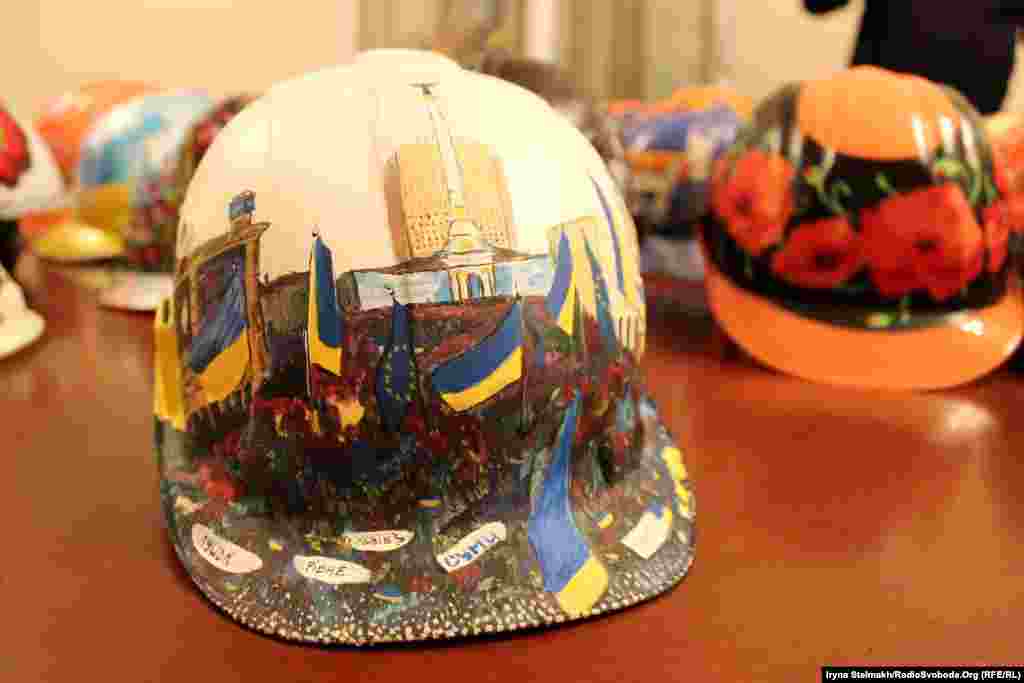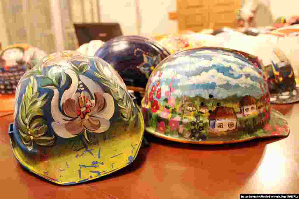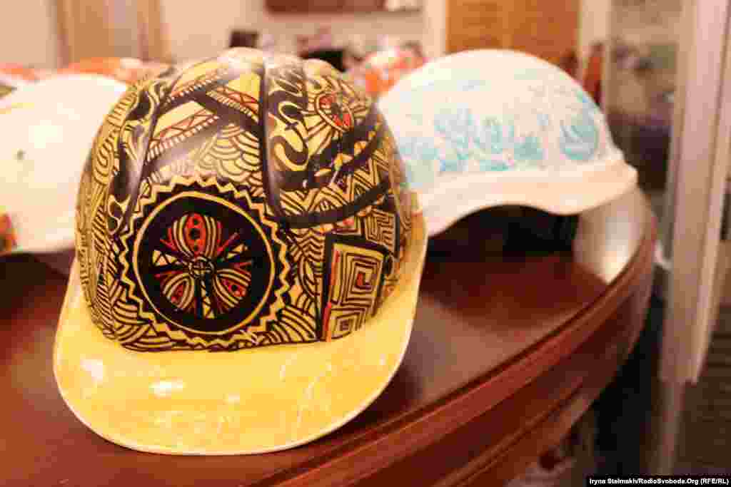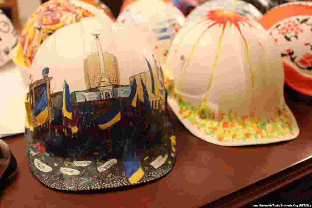 Понад сто будівельних шоломів за два місяці розмалювали художники на Євромайдані.