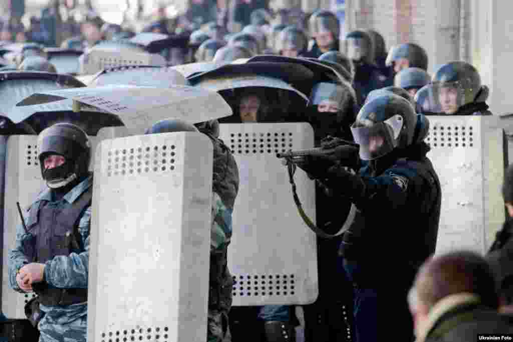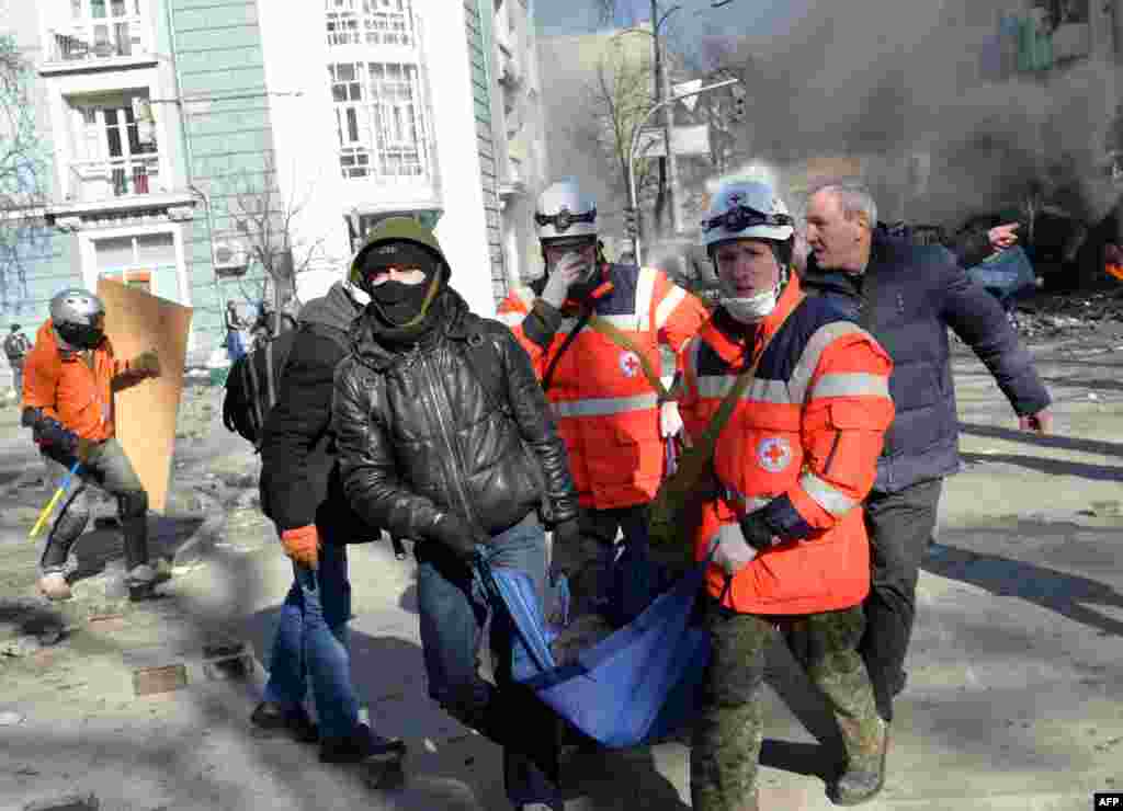 Двоє загиблих і 45 травмованих співробітників МВС потрапили до лікарні, 5 із них з вогнепальними пораненнями через сутички у центрі Києва, Про це Радіо Свобода повідомила речниця столичної міліції Ольга Білик. Водночас, про близько 250 поранених і щонайменше п'ятьох загиблих інформує Євромайдан. (Дані станом на 13:40 18 лютого)