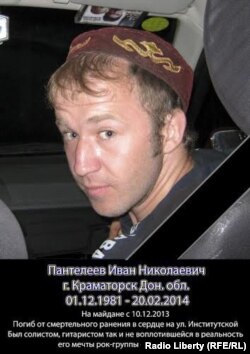 Пантєлєєв Іван, 32 роки, з Краматорська Донецької області, рок-музикант, автор пісень, гітарист гурту «Небо мінуса» http://vk.com/nebo_minusa. Іван мріяв про те, щоб його гурт та пісні стали відомими, доглядав за своєю 90-річною бабусею в селі в Донецькій області. На Майдан приїхав 10 грудня після того, як побачив, як «Беркут» побив студентів у ніч проти 30 листопада. «Він шкодував, що не поїхав раніше. Ваня говорив, що там образили людей, і він хоче допомогти їм, захистити. Тому й поїхав», – розповіла сестра Світлана. Другу, який мав їхати з ним до Києва, але не зміг, сказав на прощання: «Я відчуваю, що маю бути там». Приватбанк Пантелеева Людмила Ивановна 5168757224009979.