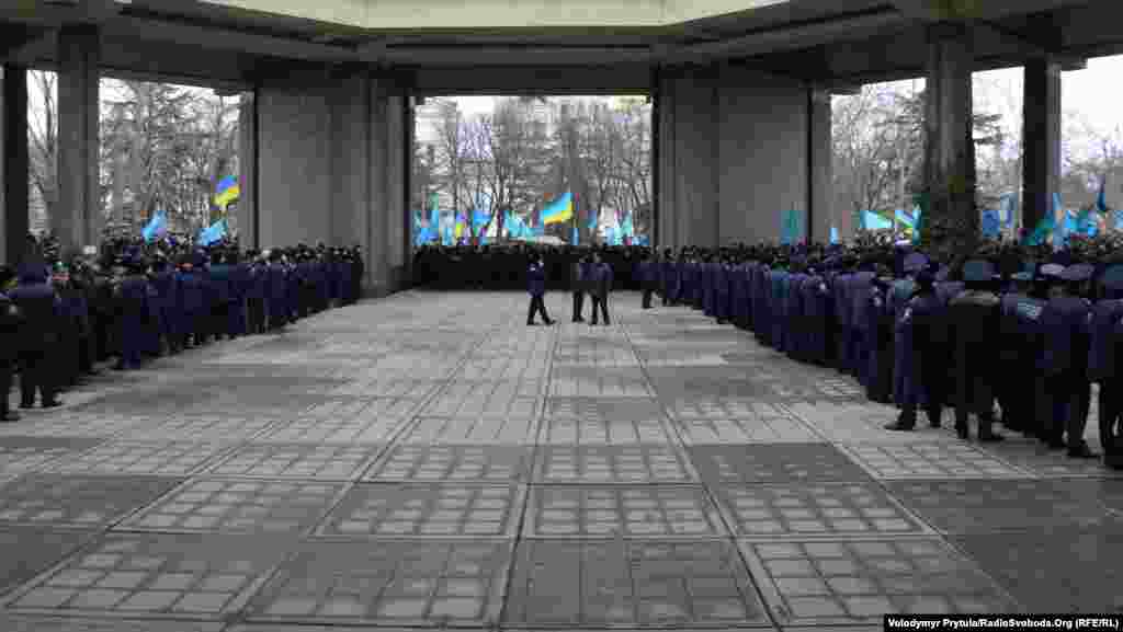 Під стінами кримського парламенту в Сімферополі 26 лютого пройшли мітинги за і проти збереження територіальної цілісності України. Понад 10 тисяч кримських татар і кримчан інших національностей прийшли виступити проти можливих сепаратистських рішень Верховної Ради Криму. Їм протистояло до 5 тисяч активістів проросійських організацій. Після тривалої штовханини і низки дрібних зіткнень сепаратистів відігнали від кримського парламенту.
