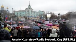 У центрі Луганська розпочалася акція «Народний референдум». Жителям найсхіднішого обласного центру України, які прийшли на центральну площу міста, видали бюлетені і запропонували відповісти на п’ять запитань.