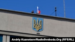 На будівлі СБУ встановлено російські триколори. Сепаратисти намагалися збити герб України, але тризуб виявився завеликим, тому його лише пошкодили. Одна з активісток по гучномовцю заявила, що український герб не пасує до російського прапора. Серед присутніх є чимало тих, хто щиро вірить у правильність своїх дій – і їжу привозять, і жертвують гроші на потреби учасників мітингу.