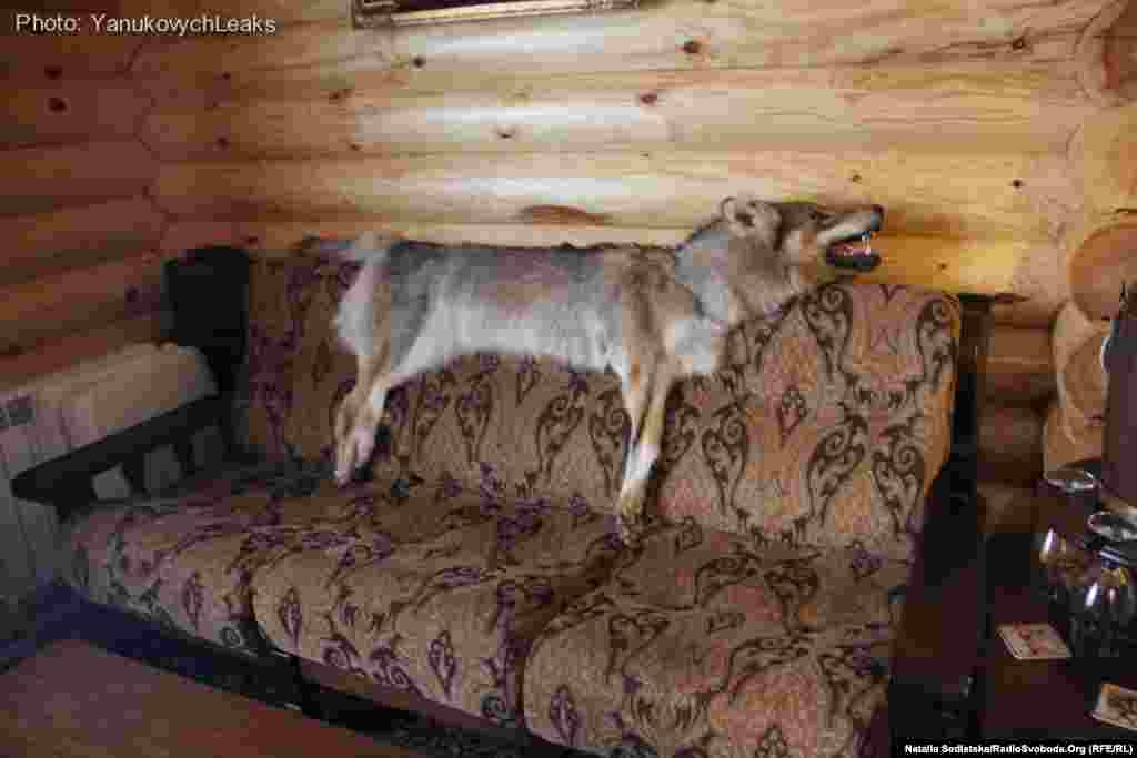 Всередині будинку відвідувачів зустрічає опудало голови кабана, трохи далі на тумбочці – сова, на стіні навпроти – голова лося. На підлозі в головній залі розпластані шкіри вовків, з крісла звисає шкіра ведмедя. На другому поверсі цього будинку – декілька гостьових кімнат. «Члени клубу практично тут не зупинялися. Бувало, затримувалися до 2-3 ночі – і все», - говорить Сергій, який раніше працював на будівництві об’єкту, але який відмовився назвати своє призвіще.
