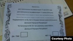 Нарешті відоме питання, яке хочуть винести на незаконний референдум, бо раніше точились дискусії щодо кількості й змісту питань. Питання буде єдине: «Чи підтримуєте ви Акт про державну самостійність Донецької народної республіки?». При цьому, жодних водяних знаків або бодай якихось захисних елементів бюлетені не мають – їх можна безперешкодно роздрукувати у будь-якій кількості. Як заявили у самопроголошеній республіці, списки виборців вони уже мають і загалом до референдуму готові.