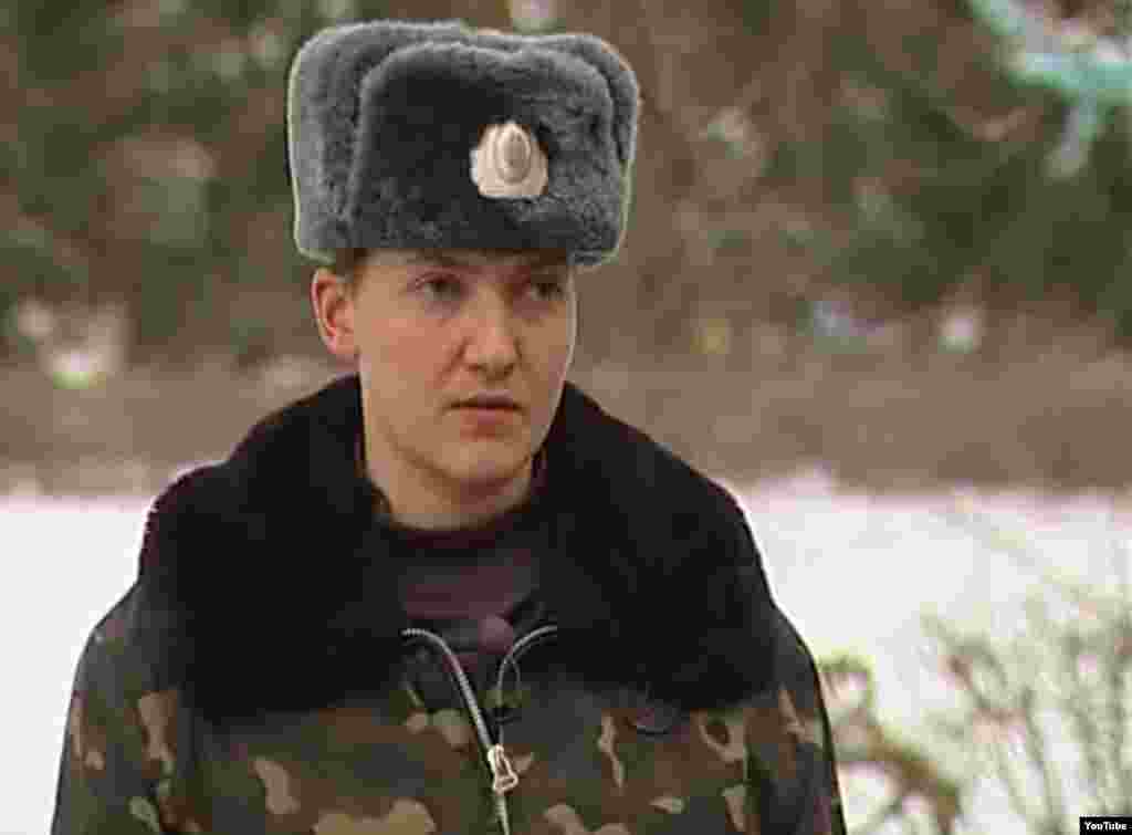 Надія Савченко (11 травня 1981 рік, Київ) – старший лейтенант, штурман-оператор вертольота Мі-24 Повітряних сил Збройних сил України. В зоні АТО перебувала під час своєї відпустки. Надію Савченко захопили бойовики з угруповання «ЛНР», яке визнане в Україні терористичним. Згодом стало відомо, що вона опинилася в слідчому ізоляторі на території Росії. МЗС України заявило: це ще одне підтвердження, що «терористи планують і реалізовують свої злочини на території України у тісній зв’язці зі спецслужбами Російської Федерації». (Більшість світлин у фотогалереї взято з публікації на сайті ТСН: http://goo.gl/gqLWQi)