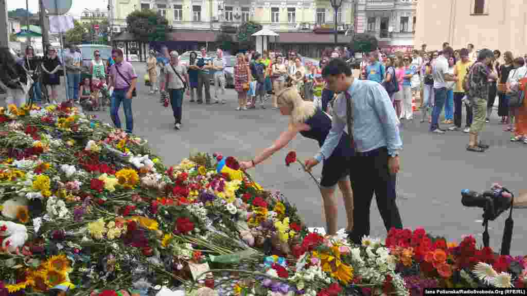 До посольств Нідерландії та Малайзії продовжують приходити люди, аби вшанувати пам'ять загиблих у «Боїнгу-777» . Найбільше несуть квіти та дитячі іграшки, адже на борту було 80 дітей. Загалом загинуло 298 осіб.