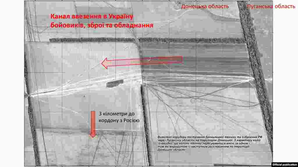 Супутникова фотозйомка кордону між Донецькою областю (Україна) та Ростовською областю (РФ), липень 2014 року (Інформація СБУ)
