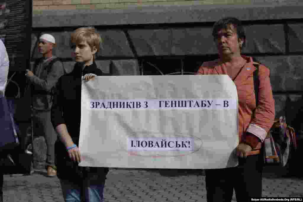 Близько тисячі мітингувальників пройшлися містом з гаслами «Вимагаємо підмогу Іловайську!», «Зброю батальйонам!», «Підтримай батальйони або знімай погони!».