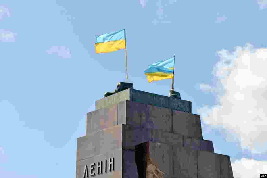 Пам'ятник Леніну, який стояв на площі Свободи у Харкові, повалили увечері 28 вересня. Активісти понад чотири години працювали над тим, щоб звалити його.