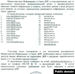 У вересні «міністерство інформації та зв’язку» «ДНР» оприлюднило постанову, яка вимагає заблокувати діяльність низки інтернет-ресурсів на території так званої «Донецької народної республіки». Це рішення ухвалили начебто для припинення розпалювання міжнаціональної ворожнечі, а також боротьби з розповсюдженням неправдивої інформації та наклепу. Під заборону потрапили лише ті інтернет-видання, які не ретранслюють позицію російських ЗМІ, та не підтримують сепаратистські течії на Донбасі. Втім, це рішення не викликало бурхливої реакції у місцевої журналістської спільноти – тотальна заборона проукраїнських засобів масової інформації у Донецьку вже стала нормою за останні півроку.