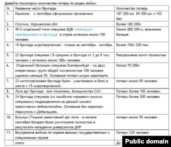 Таблиця правозахисниці Олени Васильєвої з даними про жертви серед військових Росії на території України