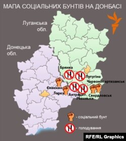Хвиля соціальних протестів прокотилася містами Донецької та Луганської області, які нині контролюються незаконними збройними формуваннями. У Єнакієві матері вимагали соціальних виплат на дітей, а у Свердловську – на народному зібранні оголосили про смерть від голоду 64 людей. Як розповідають місцеві волонтери, у крамницях є достатньо продуктів, проте люди не мають за що їх купити.